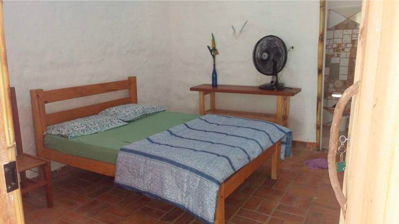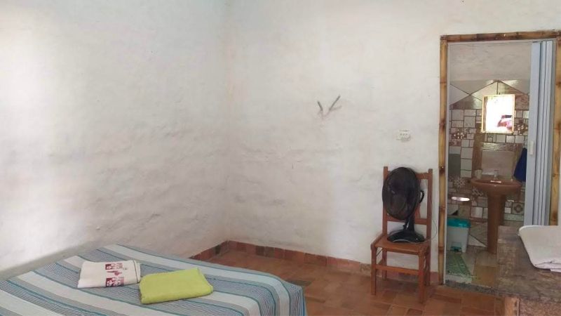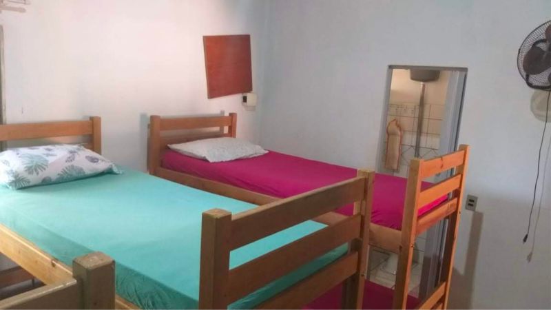 1 cama de casal + 2 beliches, banheiro, ventilador e