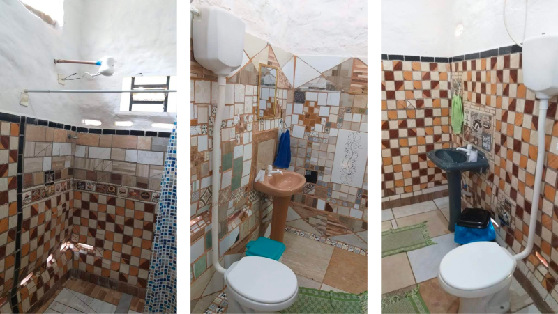 Estrutura com banheiros unissex, chuveiro elétrico, iluminação, tomadas e varais.